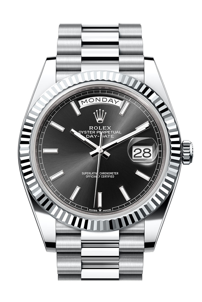 Rolex Day-Date 40 Black Dial Fluted Bezel Platinum President Watch - Ref # 228236