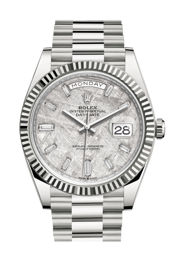 Rolex Day-Date 40 Meteorite Diamond Dial Fluted Bezel White Gold President Automatic Watch - Ref # 228239