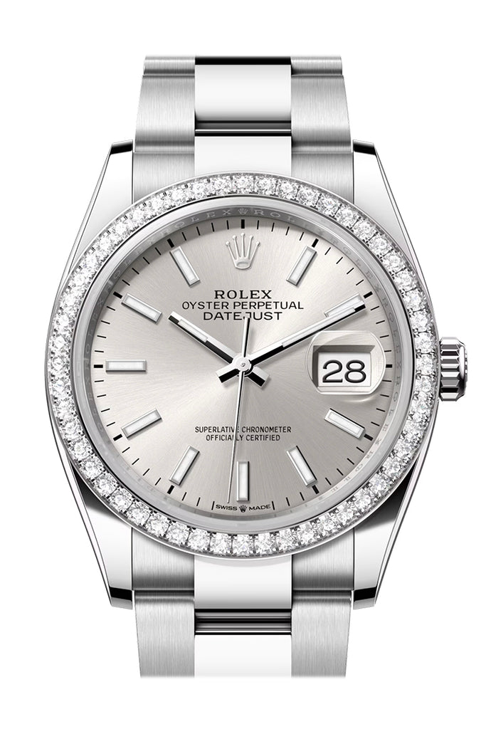 Rolex Datejust 36 Silver Dial Diamond Bezel Watch - Ref # 126284RBR 126284RBR-0006