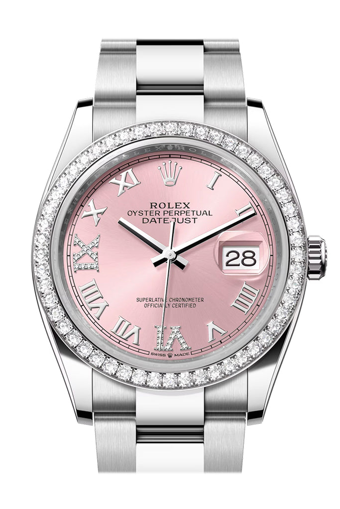 Rolex Datejust 36 Pink Roman Dial Diamond Bezel Watch - Ref # 126284RBR 126284RBR-0024