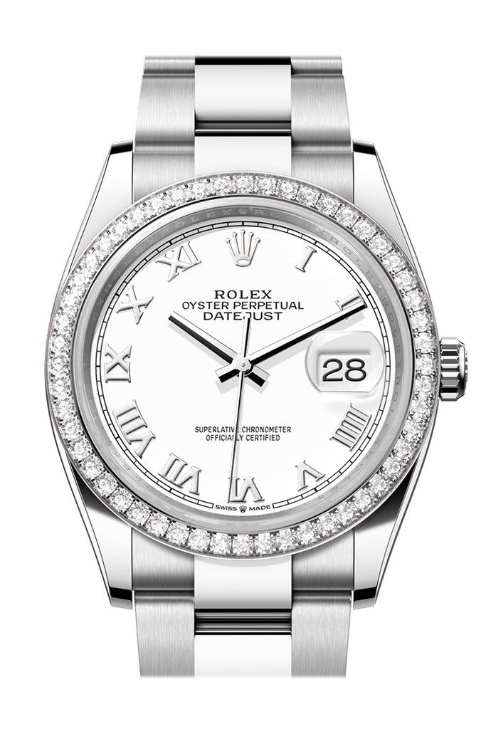 Rolex Datejust 36 White Roman Dial Diamond Bezel Watch - Ref # 126284RBR 126284RBR-0018