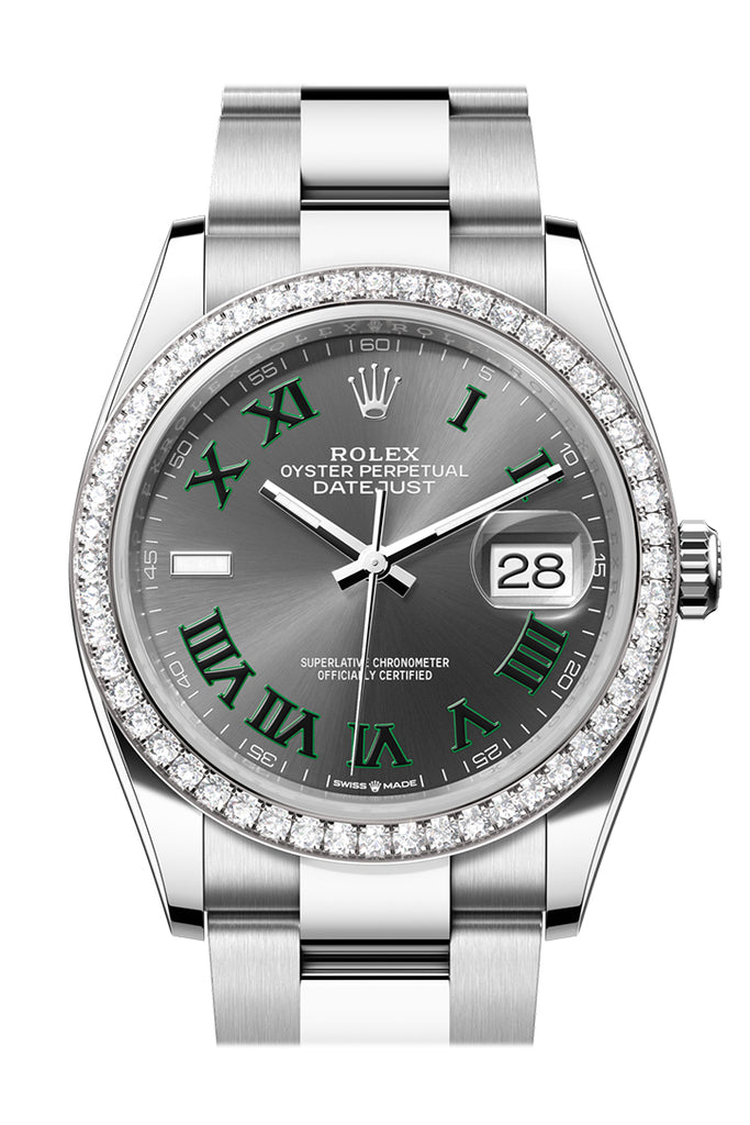 Rolex Datejust 36 Grey Green Diamond Dial Diamond Bezel Watch - Ref # 126284RBR 126284RBR-0038