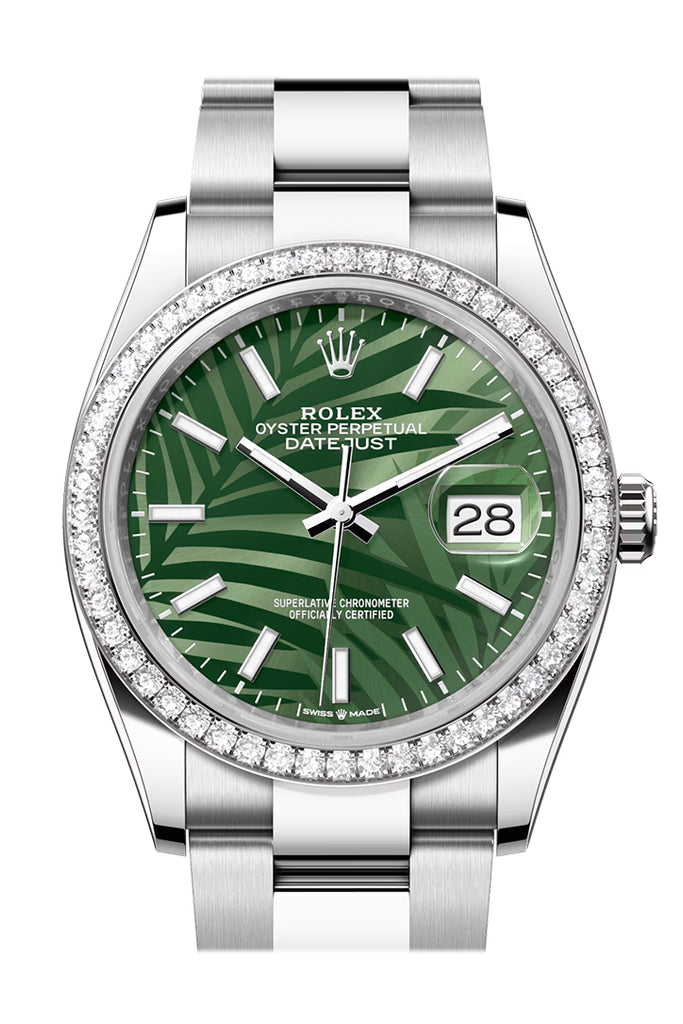 Rolex Datejust 36 Green Palm Motif Dial Diamond Bezel Watch - Ref # 126284RBR 126284RBR-0040