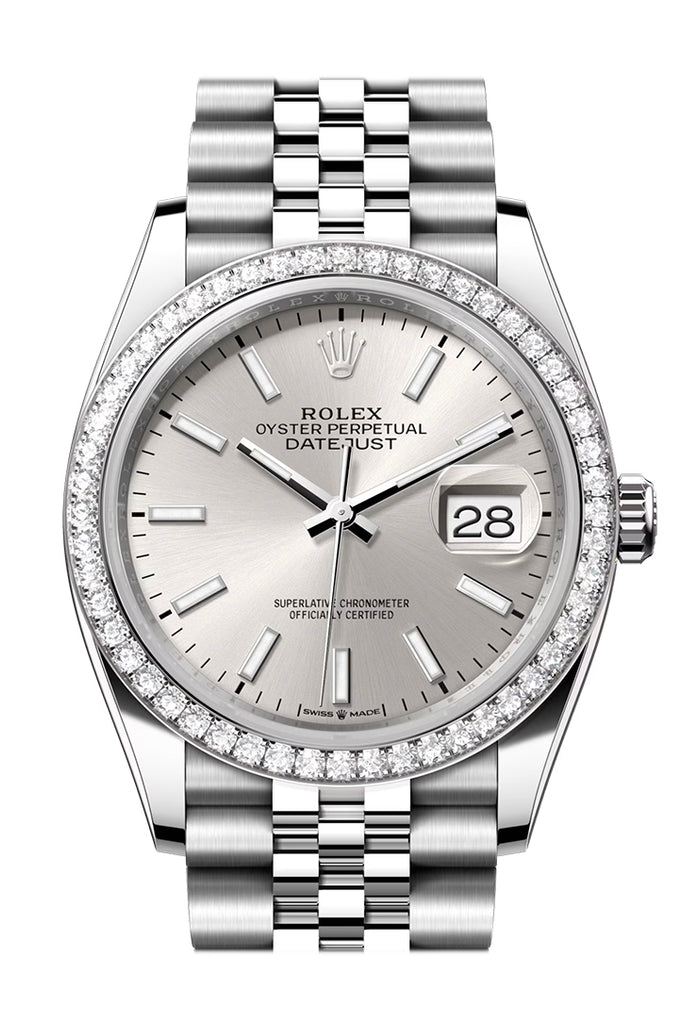 Rolex Datejust 36 Silver Dial Diamond Bezel Jubilee Watch - Ref # 126284RBR 126284RBR-0005