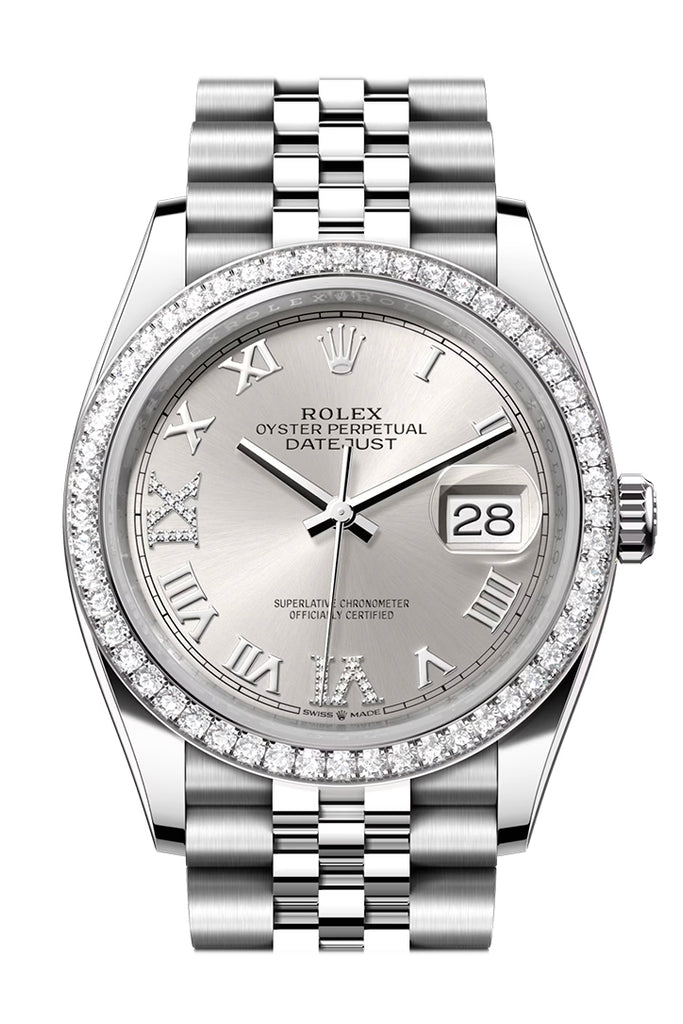 Rolex Datejust 36 Silver Roman Dial Diamond Bezel Jubilee Watch - Ref # 126284RBR 126284RBR-0021