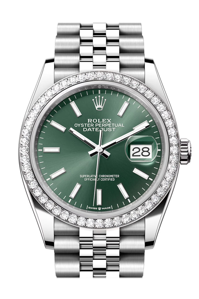 Rolex Datejust 36 Green Dial Diamond Bezel Jubilee Watch - Ref # 126284RBR 126284RBR-0043