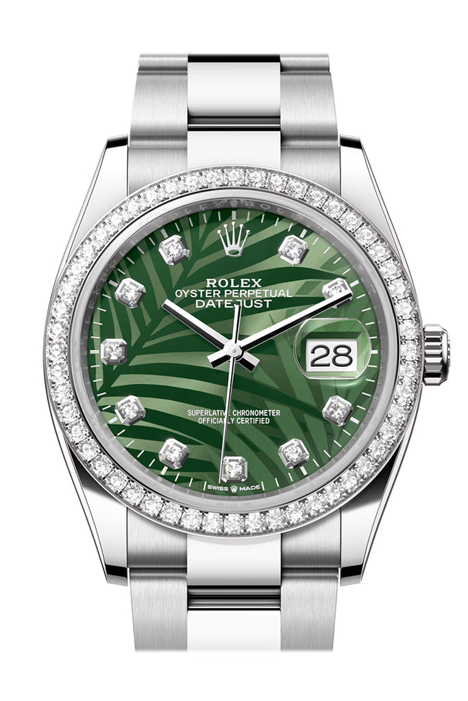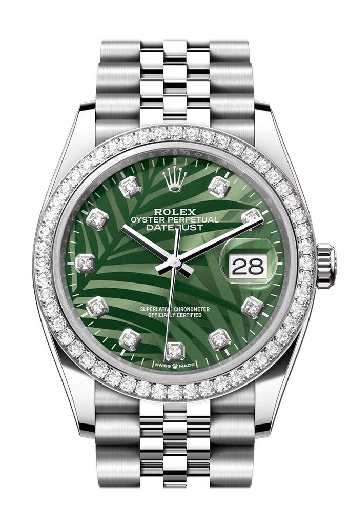 Rolex Datejust 36 Green Palm Motif Dial Diamond Bezel Jubilee Watch - Ref # 126284RBR 126284RBR-0039