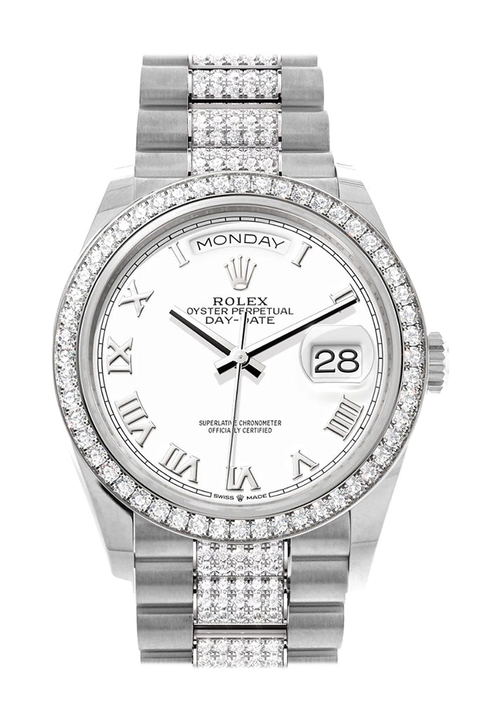 Rolex Day-Date 36 White Dial Diamond Bezel White Gold Diamond President Watch - Ref # 128349RBR