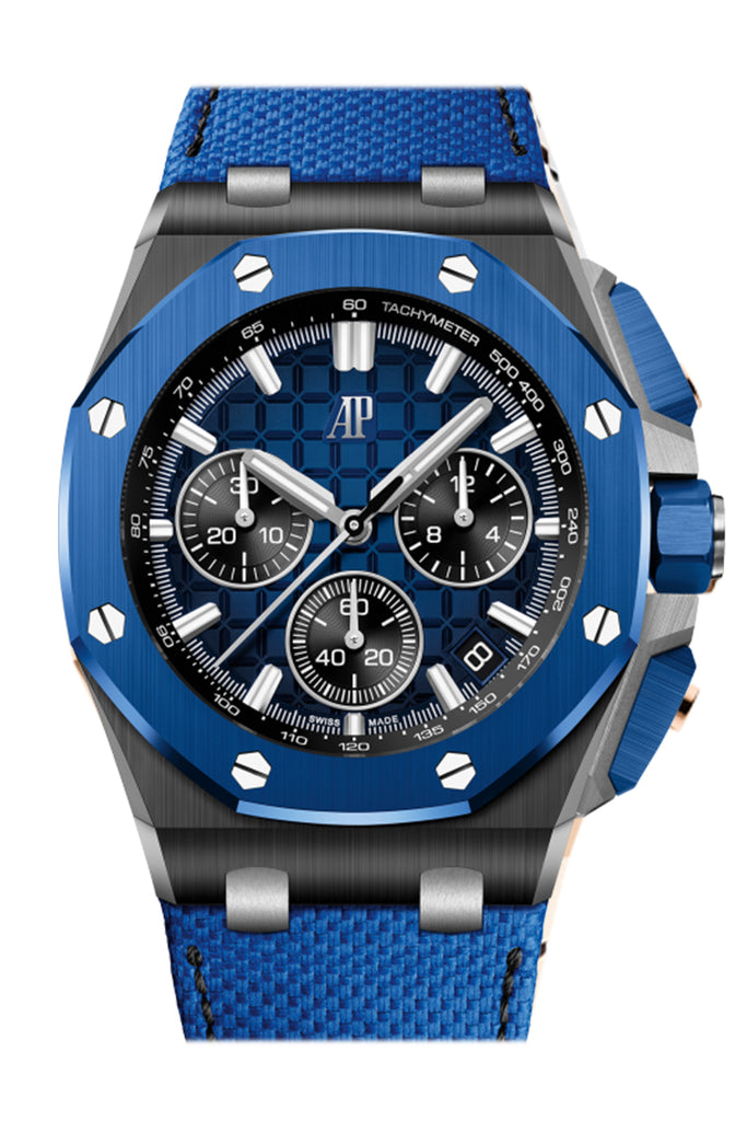 Audemars Piguet Royal Oak Offshore Selfwinding Chronograph 44mm Blue Méga Tapisserie Dial44mm Black ceramic case,...