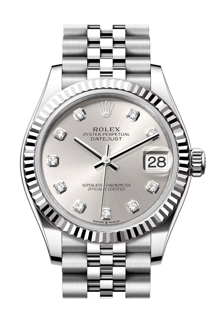 Rolex Datejust 31 Silver Diamond Dial Fluted Bezel Jubilee Ladies Watch - Ref # 278274 278274-0030