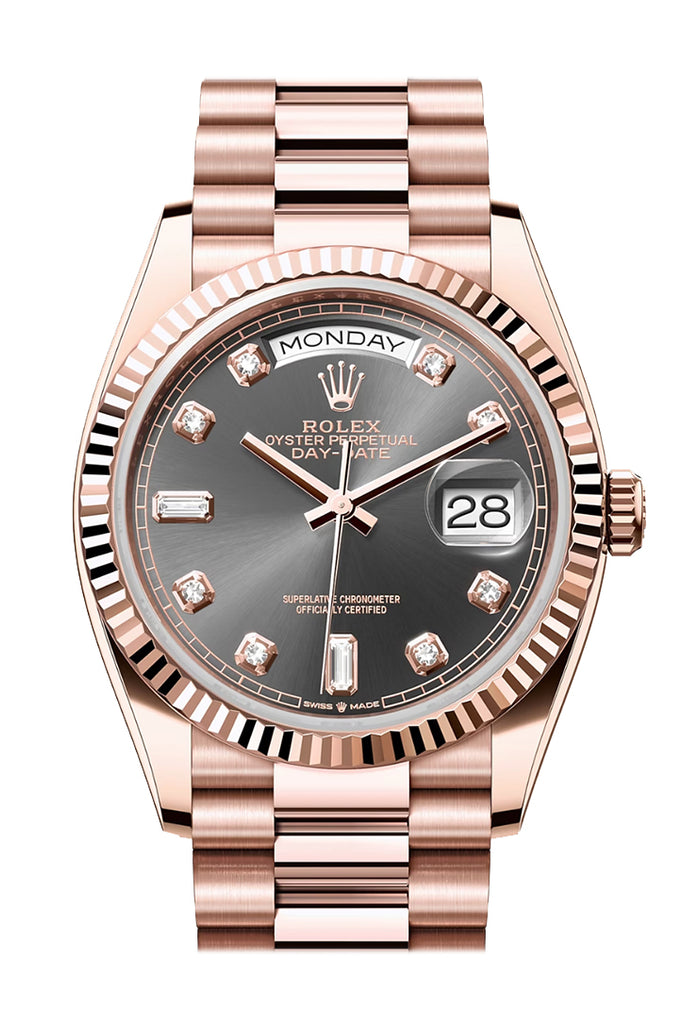 Rolex Day-Date 36 Slate Dial Fluted Bezel 18K Everose gold President Watch - Ref # 128235