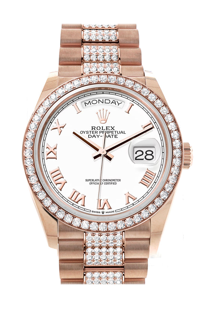 Rolex Day-Date 36 White Dial Diamond Bezel Everose Gold Diamond President Watch - Ref # 128345RBR