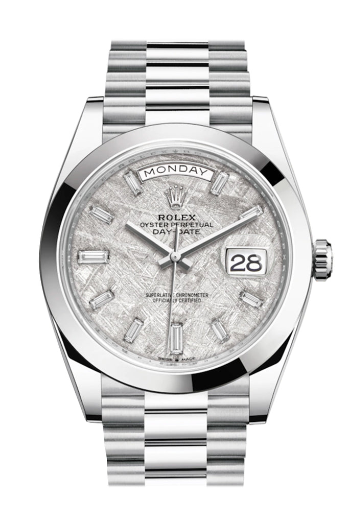 Rolex Day-Date 40 Meteorite Baguette Diamond Dial Dial Dome Bezel Platinum President Automatic Watch - Ref # 228206