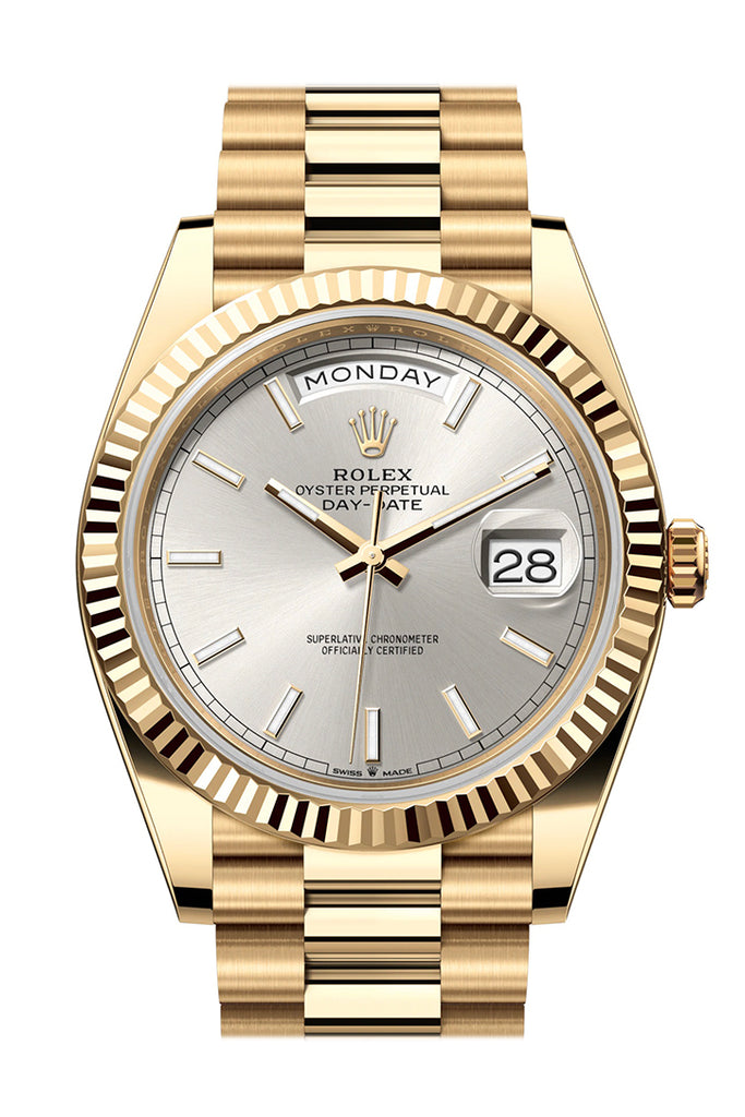 Rolex Day-Date 40 Silver Dial 18K Yellow Gold President Watch - Ref # 228238